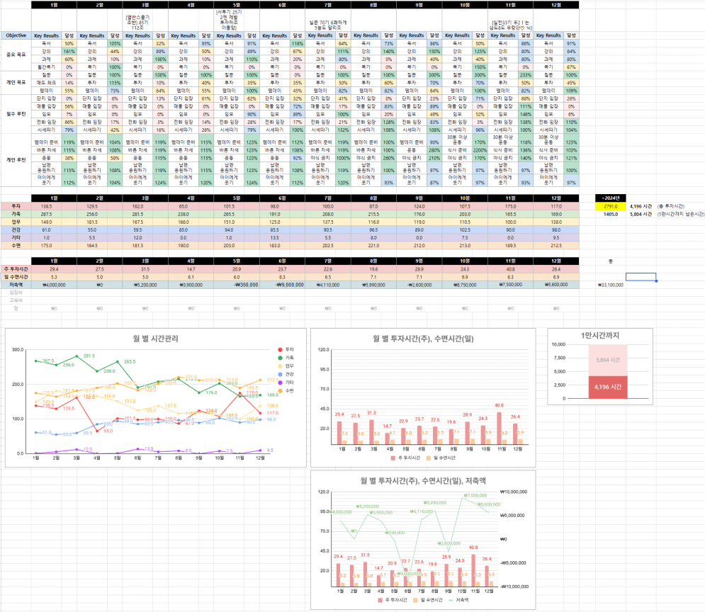11월에 특히 실전반하며 최대한 투자 공부를 위한 시간을 끌어올렸고, 12월에도 나쁘지 않은 투자 시간을 유지했다.