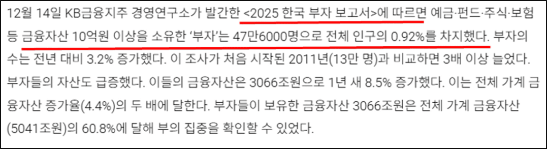우리나라에서 금융자산 10억 이상을 가진 사람은