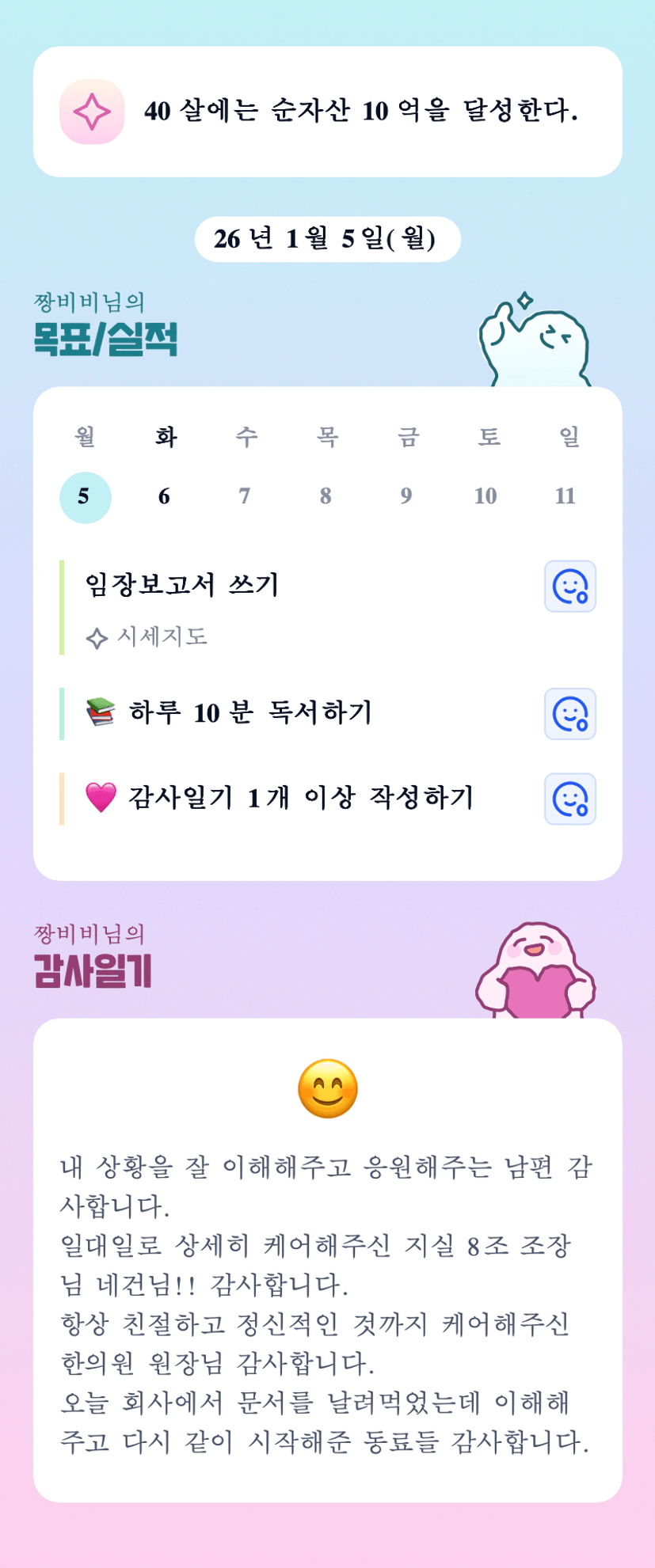 문서를 날려먹었지만 다시 해내신 비비님도 짱이에요❤️🔥 어제도 고생 많으셨어요! 오늘도 해야할 일들로 채워나가는 알찬 하루 가보시죠~~! 날씨가 추우니 꽁꽁 싸매셔유~~ 기분좋은 하루 화이팅!!!🫡
