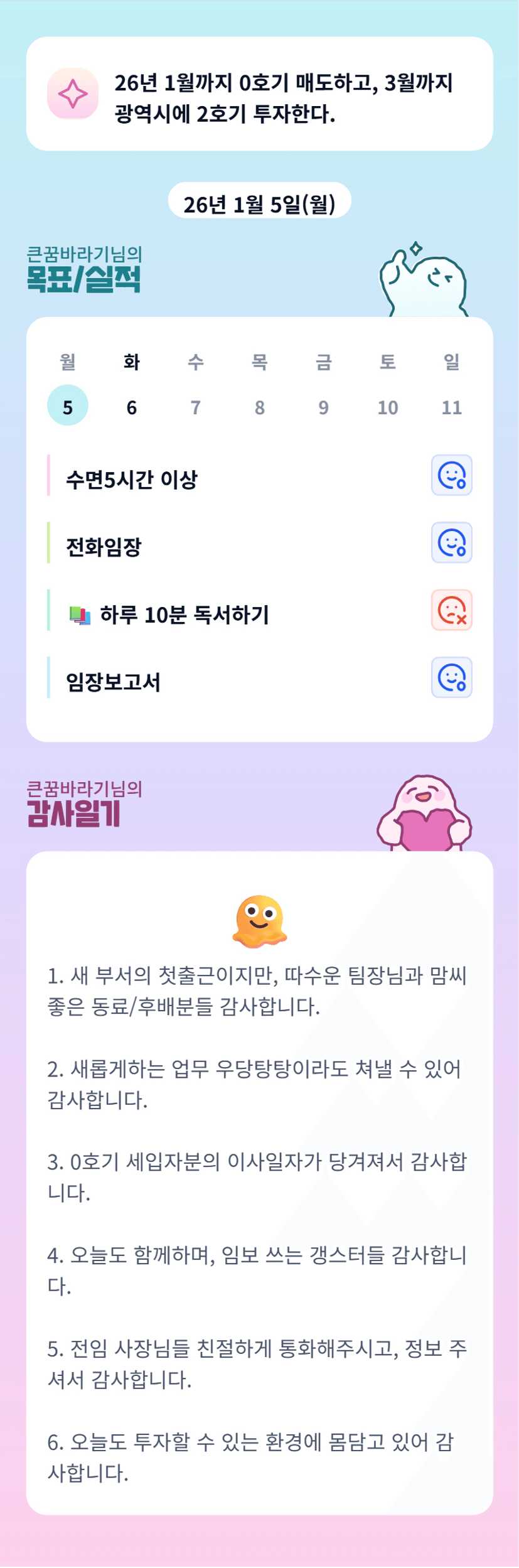 오늘이 첫 부서이동이군요!^^ 큰꿈님 착착, 이뤄낸다!