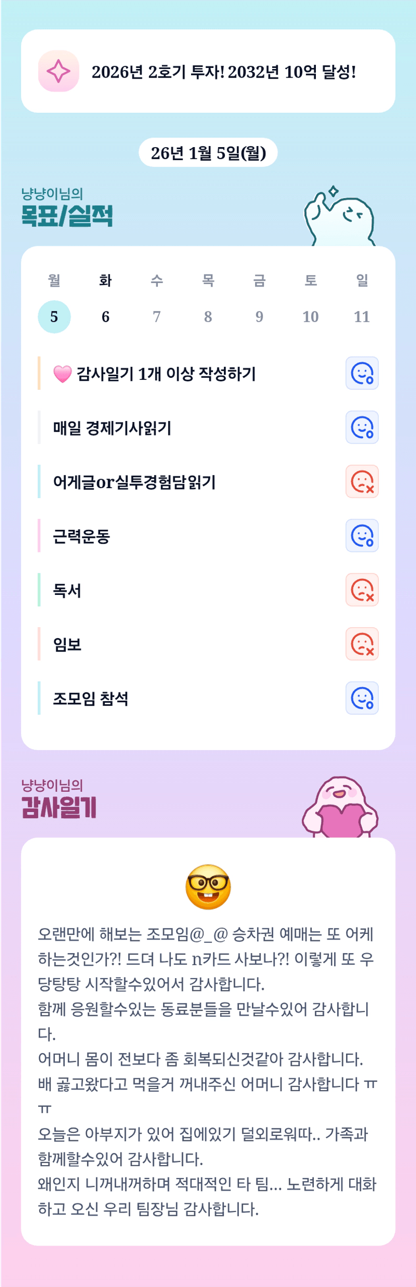 냥냥이님 26년도 또 부지런히 달리시군요!!!!!! 지투기 파이탱!!