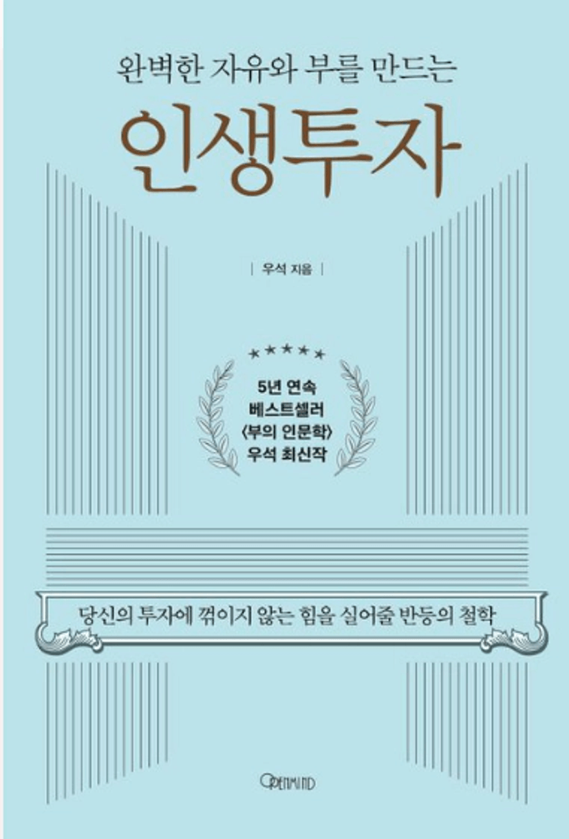 이 책은 ‘부의 인문학’을 쓴 우석님이 2023년에 쓴 책이다. 전작인 부의 인문학을 감명깊게 읽었던 터라 팬심 가득한 마음으로 이 책을 읽게 되었다. 이책에서 우석님은 현명한 투자자로서 뿐만 아니라 직장생활에 대한 것, 인생을 사는 방식, 가족 관계와 자녀 교육에 관한 것 등등 인생선배로서 삶을 어떻게 살아야 하는지 설명해준다. 삶에서 마주치는 문제들을 본인은 어떤 사고 과정을 거쳐 문제를 해결해나가는지 설명하는 과정에서 철학과 경제학의 거인들의 어깨를 빌리는 독서를 통해 머릿속 생각기계를 개선하는 것이 중요함을 강조한다. 이는 투자자로서도 반드시 탑재해야 할 역량이다. 인생의 많은 문제 뿐만 아니라 돈 가치 하락, 인구 감소 등의 문제 등 반복되는 (부동산)투자에서의 문제들도 우석님의 생각기계로 문제풀이를 해 나가는 부분을 보고 있으니, 나는 그저 탄복이 나온다.