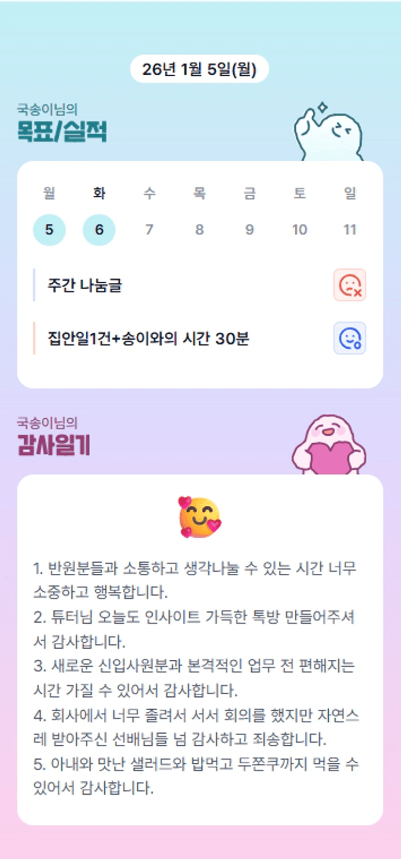 다 비슷하군요. 저도 졸려서 엄청 헤맸어요.. ㅜ 오늘도 퐈이팅 우리 국장님!!