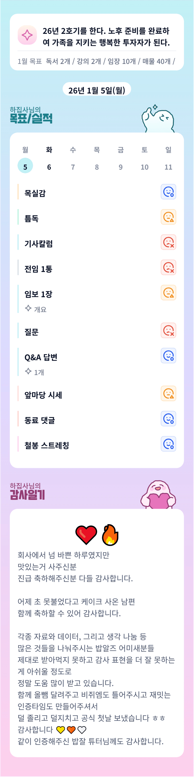 집사님~~ 진급 너무 축하드려용 ㅋㅋㅋ 덜 지쳤다니 넘나 다행쓰.. 갈길이 머오.....