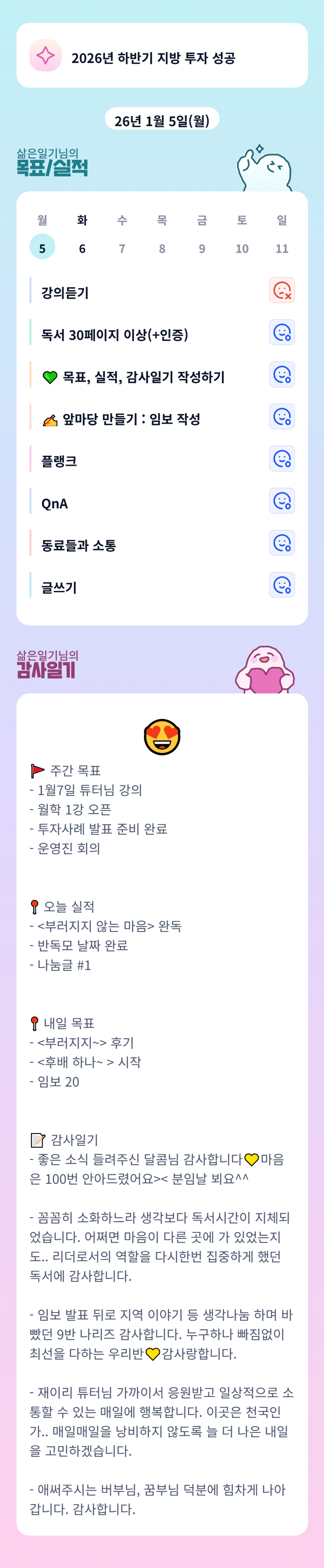 조금 더 마음을 담아 감일을 써야겠어요 ㅋㅋㅋ 반장님 감일 보고 반성합니다♡