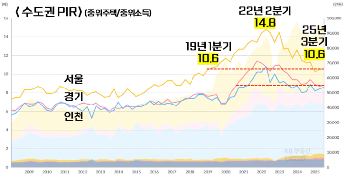 현재까지 나온 데이터를 바탕으로 25년 3분기 서울 아파트의 PIR은 10.6 입니다.