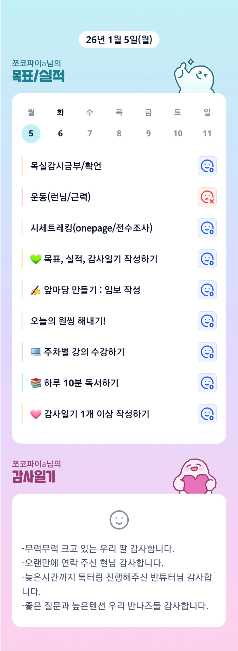 조장님~~!!! 어제 바쁜 시간 내주셔서 감사합니다👍 덕분에 힘 얻고 갑니다 히히