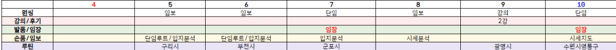 임장: 평일단임,주말오전단임(돌봄비용만큼 집중해서!)