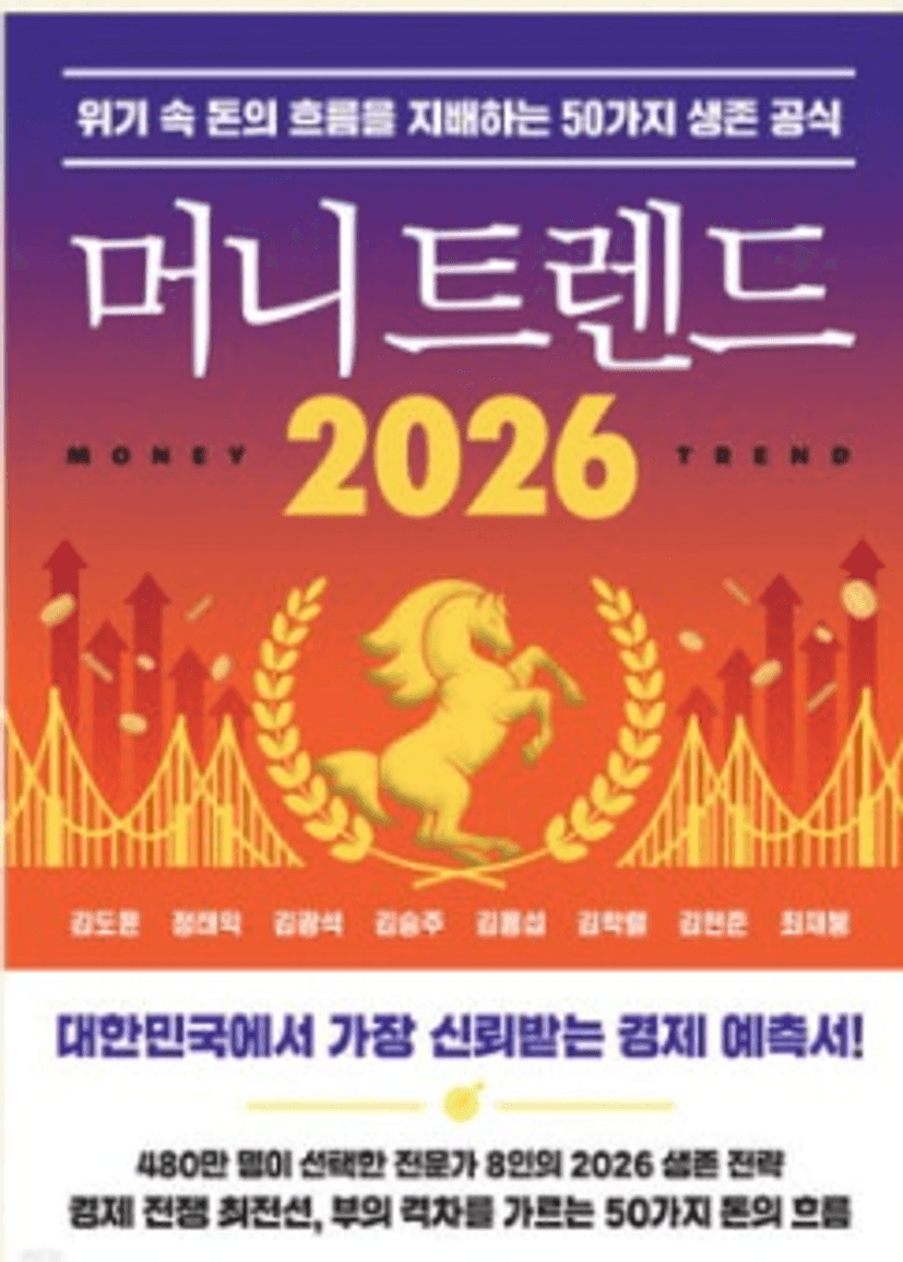 : 김도윤 외 8인 / 이 책은 2025년 한 해 경제, 문화를 이끌어갔던 트렌드와 연결하여 2026년 돈이 어디로 흘러갈지 그 흐름과 내가 가지고 가야 할 대응에 대해서 제시하는 책이다.