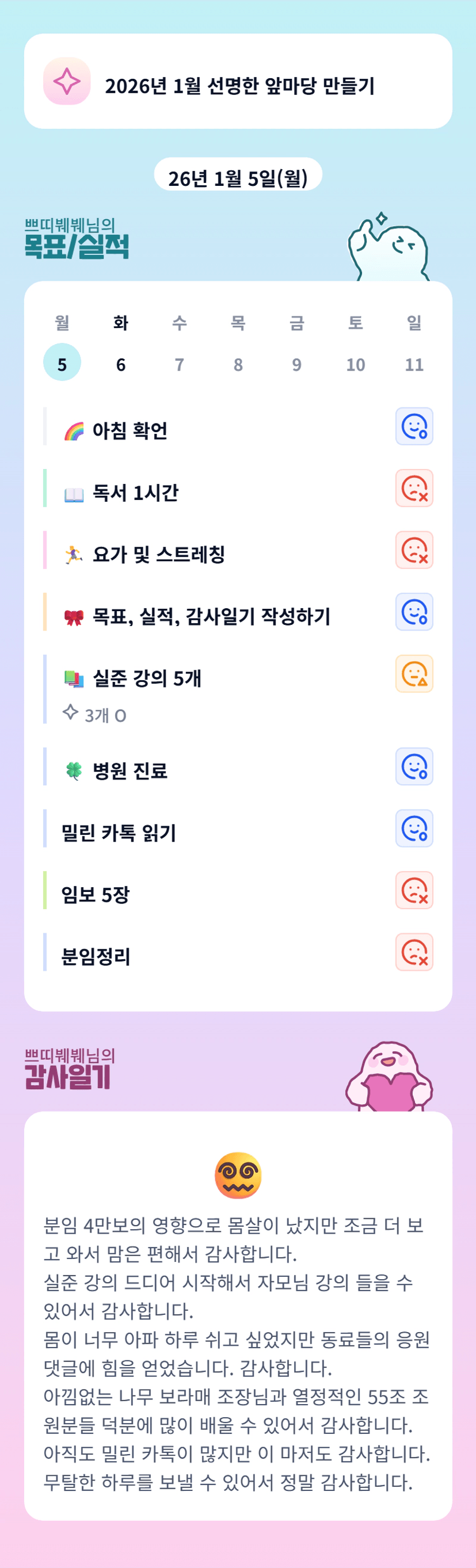쁘띠님 오늘은 좀 더 컨디션이 나아지셨으면 좋겠네요! 선명한 앞마당 만들기 같이 퐈이팅해봐요^^