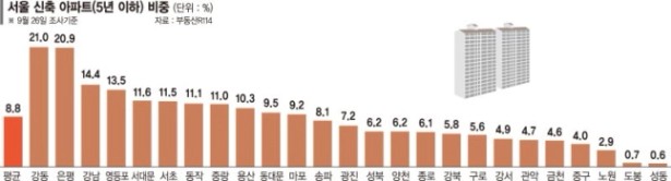 서울의 준공 5년 이내 신축아파트 비율은