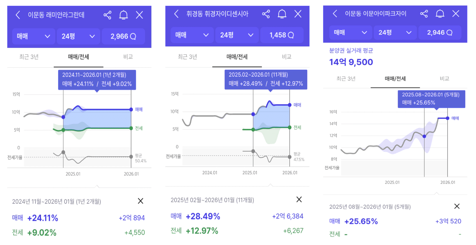 인근 이문대림e편한세상, 이문쌍용 등 기축단지와