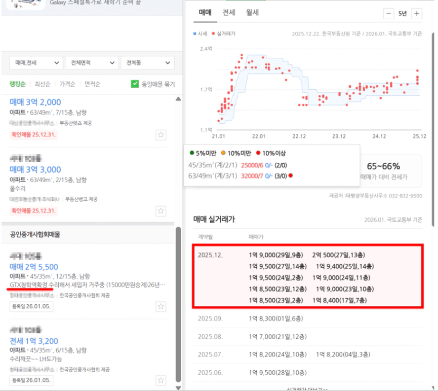 최근 실거래가보다 5~6천만원 정도 오른 가격으로 나와있었습니다.