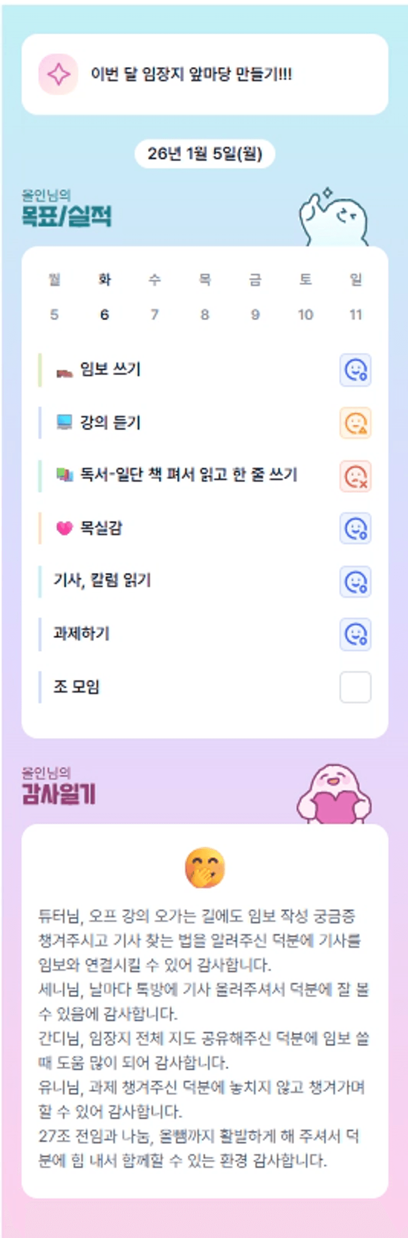 올인님 기사팀장 응원합니다>< 넘 잘하실 것 같아유ㅎㅎ