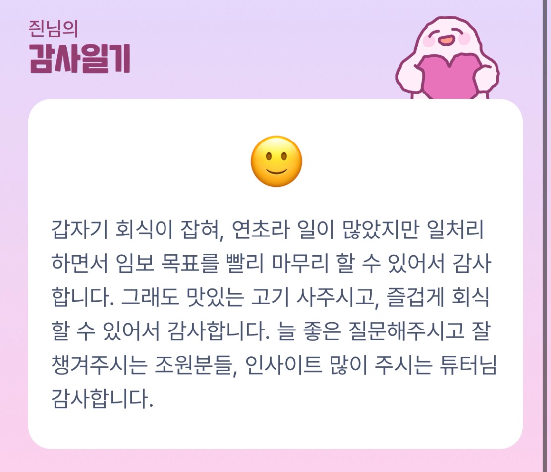 [지기17기 대동단결로 20억 가조 즨] 지기반 조장 후기
