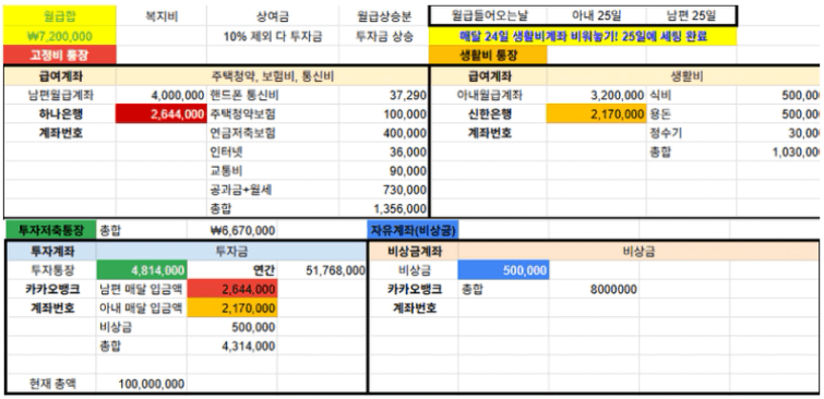 월초에 각자의 용돈과 생활비 통장에 정해진 금액을 넣으면 끝이예요