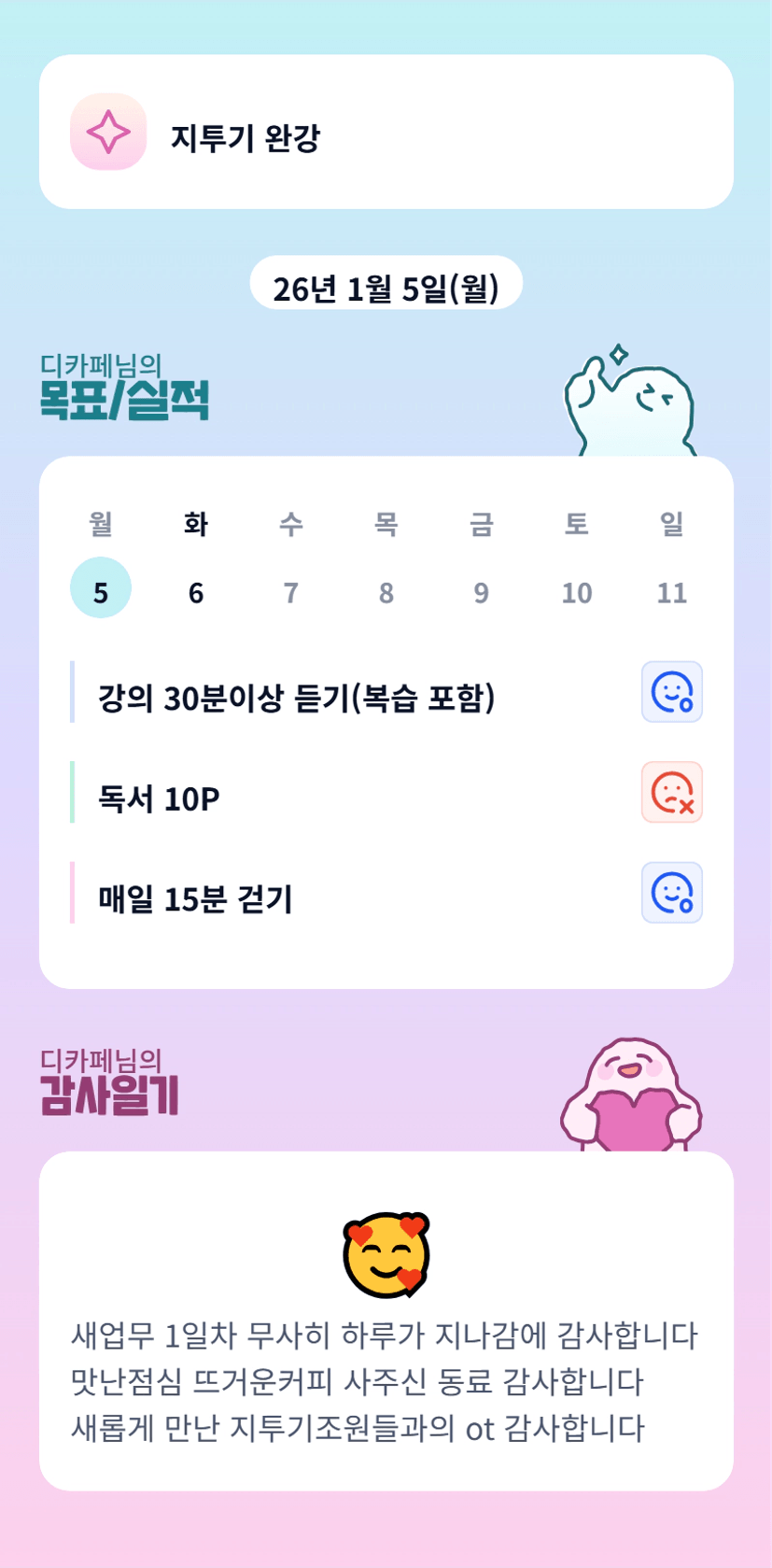 새 업무 화이팅 지투기도 화이팅하세요!