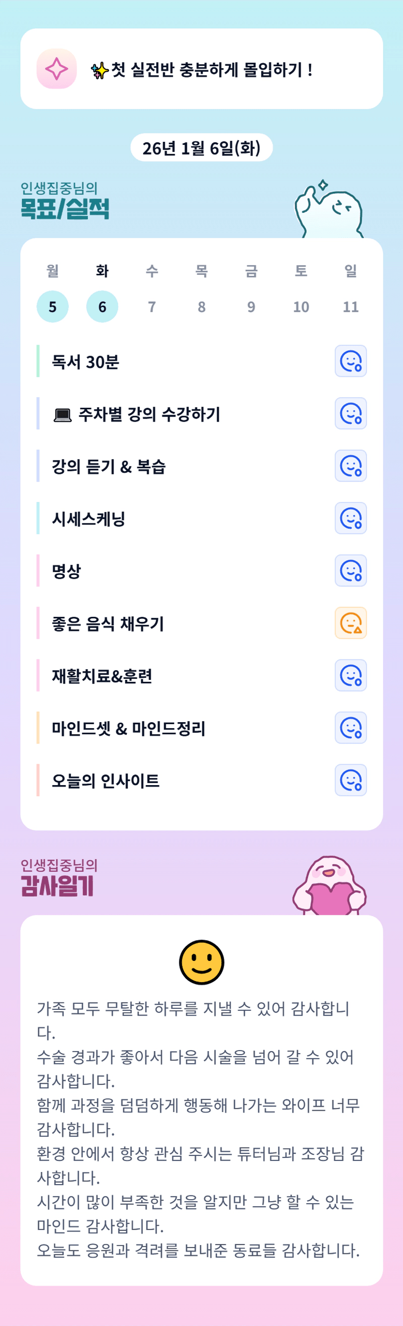 집중님♡ 환경안에서 내가 할수 있는것들을 해나가시는 모습 존경합니다🫶🫶