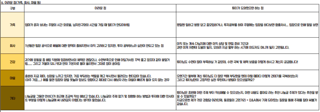한톨도 빠짐없이 튜터님께 털어놓으며 튜터님과의 씽크를 맞출 예정입니다.