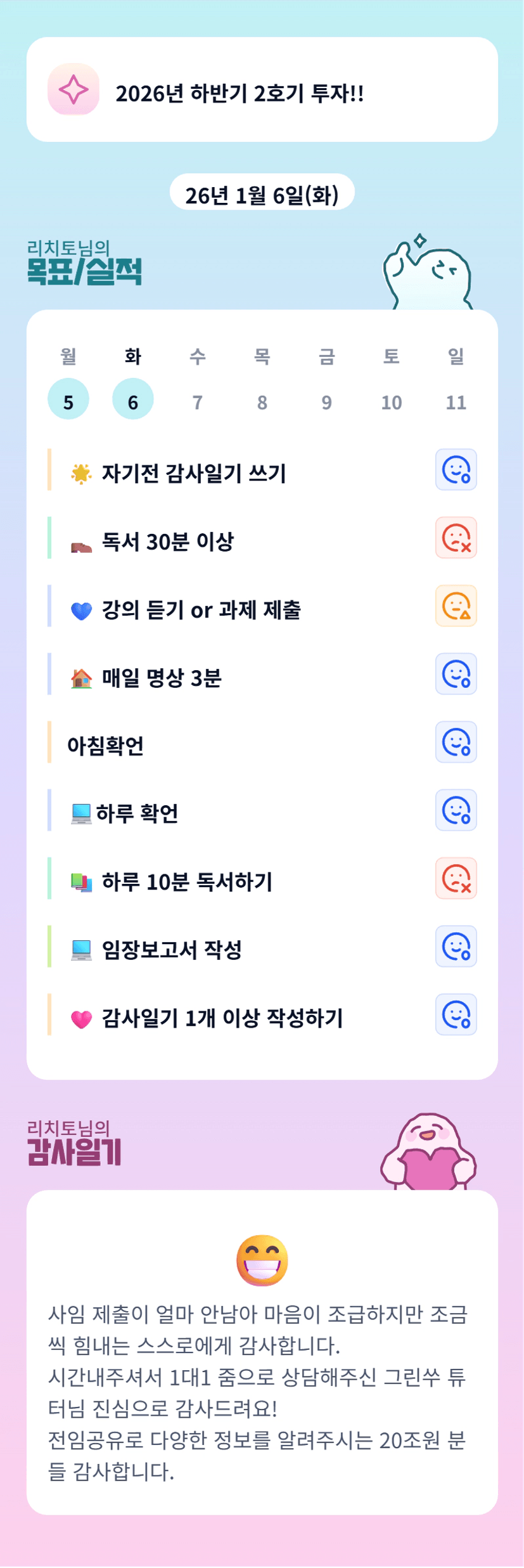 리치토님 이번 한 달 지투 실전 화이팅입니다. 26년 2호기도 화이팅