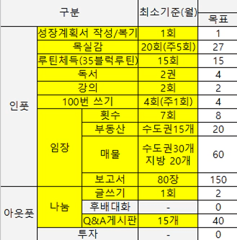 임보 목표/실적: 사임발표(1/) 투자검토 살아있는 매물 넣기(3/)