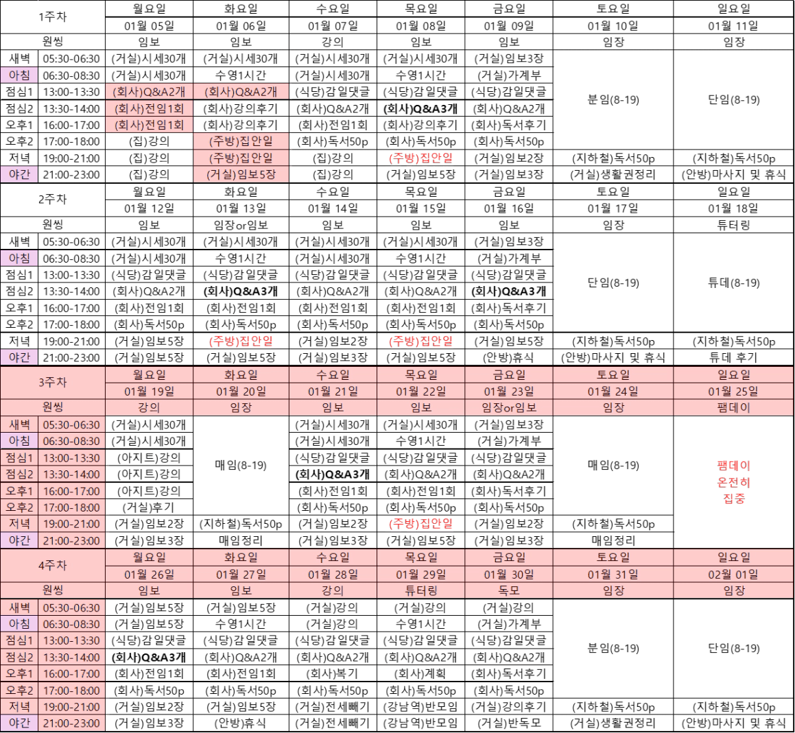 (1)회사 업무 오전으로 몰기, 오후 중 30분 틈시간 2블럭 만들기, 16-, 17-