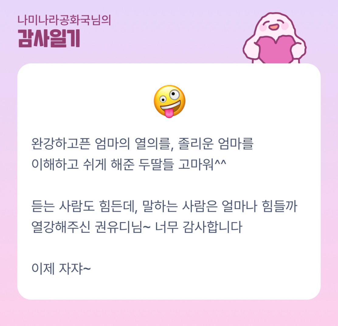 ㅎㅎㅎㅎ 나나공님 감사일기 넘 귀여워요 !