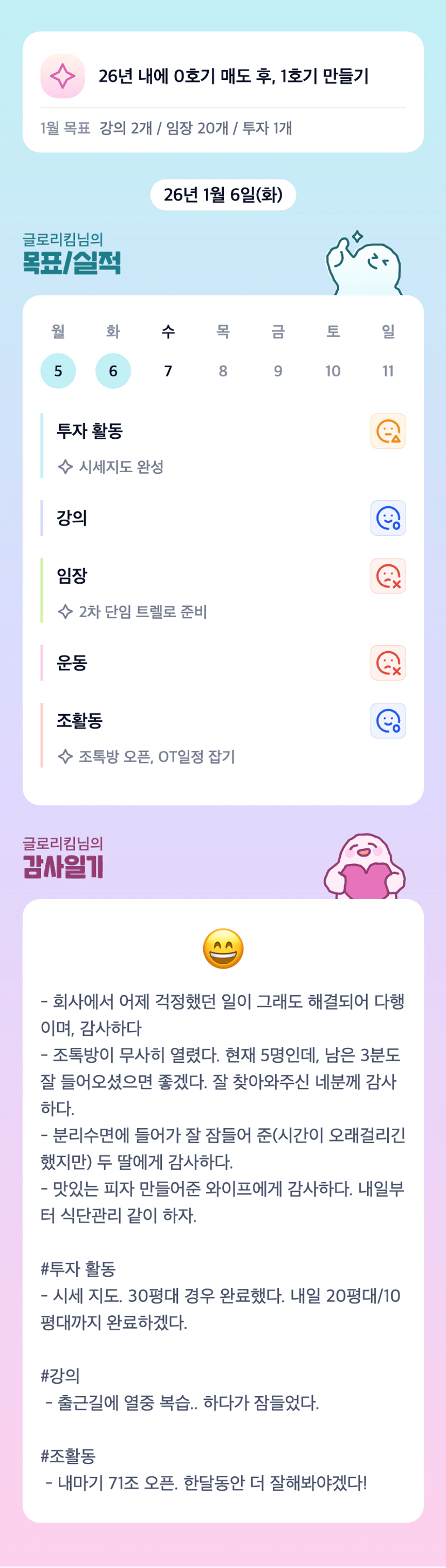 임장 20개..!!! 멋집니다 글로리킴님 ㅎㅎ 저도 글로리킴님 보고 자극 받아서 더 열심히 해야겠어요!! 함께 한달간 화이팅해요!!!