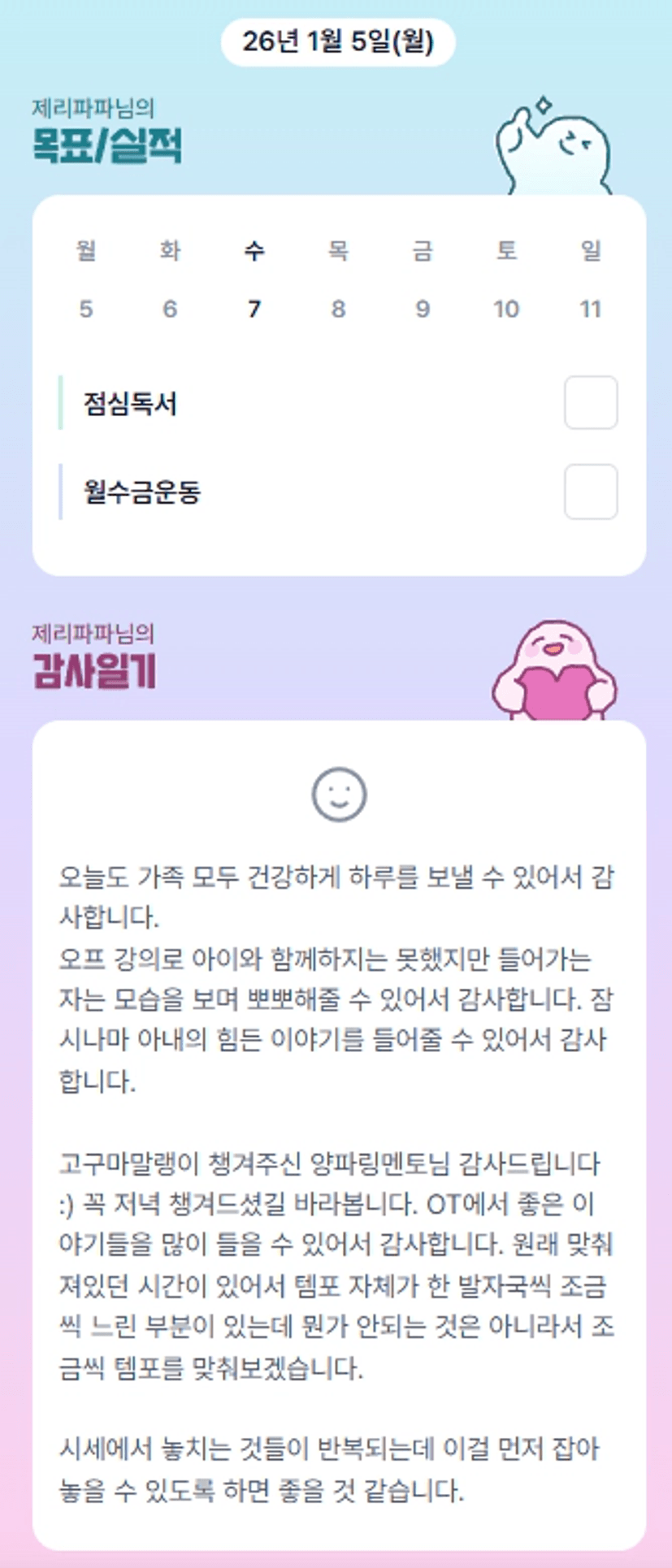 튜터님! 부족한 시간에도 저희 신경써주셔서 너무 감사드려요~! 가족과 투자, 회사 모두 열정적으로 해내시는 모습 대단하십니다b