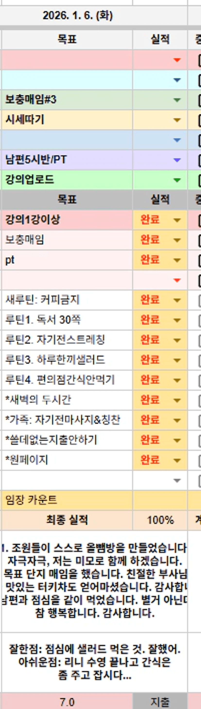 - 나는 2026년 근육량이 증가하고, 장이 편한 몸이 되었다.