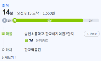 봇들마을 1~4단지가 판교역과 거리가 있다고는 하나, 가장 먼 2단지 기준으로도 버스로 약 9분이면 역에 도착합니다.
