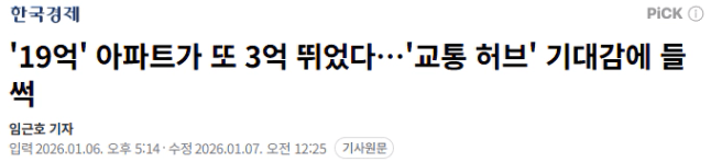 해당 지역 아파트 호가가 3.1억 원 가량 상승했다는 기사가 있었습니다.