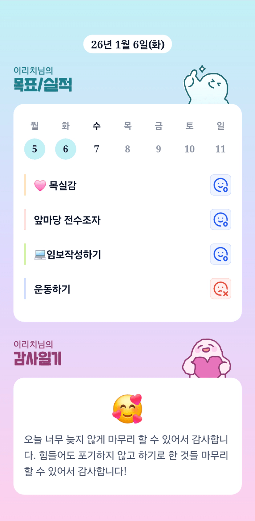 리치님~하기로한것들 잘마무리하셔서 다행이예요~ 저도 기운을 받아서 힘들어도 하기로한것들 해나갈수있도록 노력해야겠습니다~ㅎㅎ리치님도 계속화이팅이요~^^