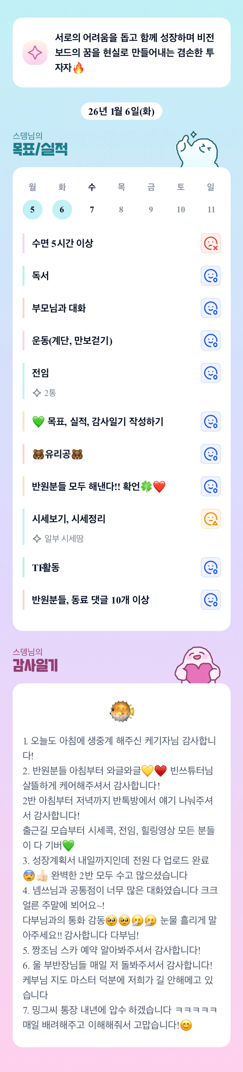 늘 감사합니다!! 뎅장님!! 오늘도 화이팅입니다. 😊