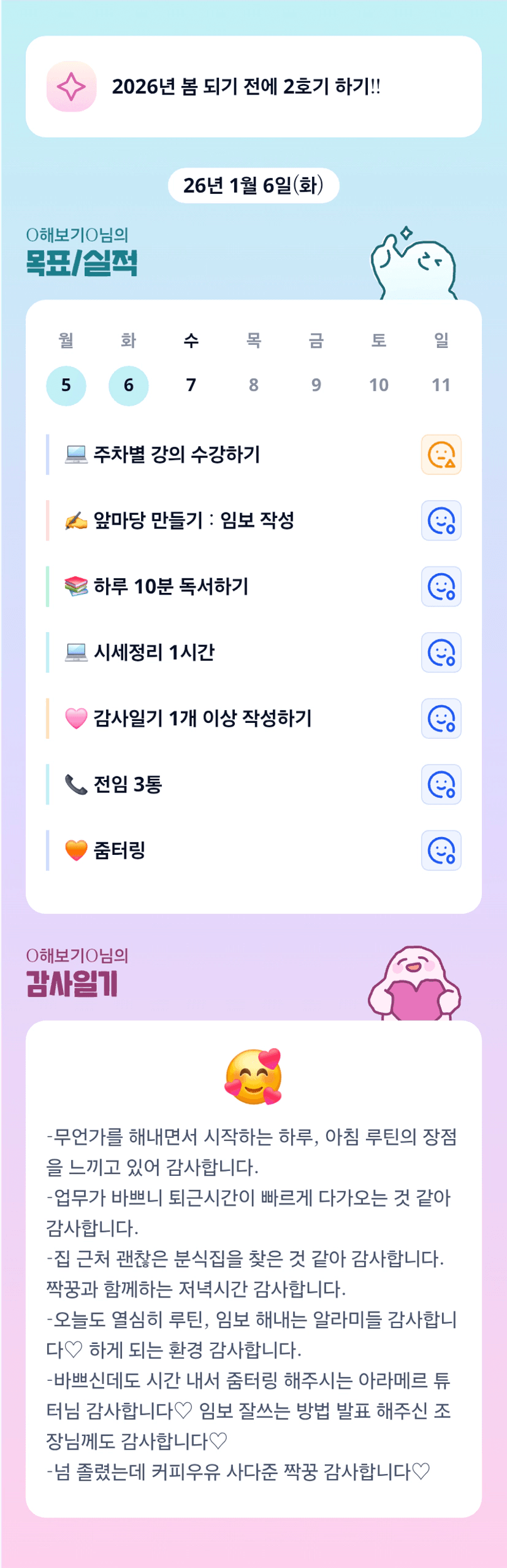 해보기님!!!! 꾸준한 루틴 멋져용~~ 지투 화이팅!!!