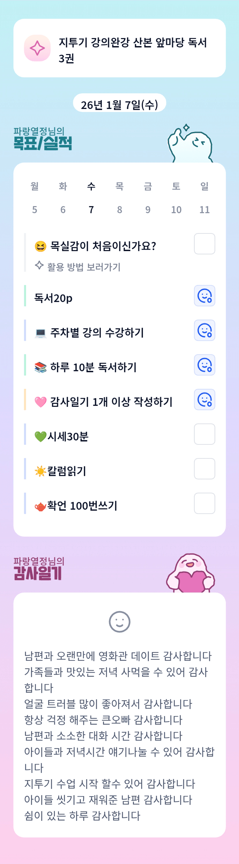 지투기도 시작하고 팸데이도 잘 보내고~ 쉬기도 한 소중한 하루였네요 ^^ 넘 수고하셨습니다~