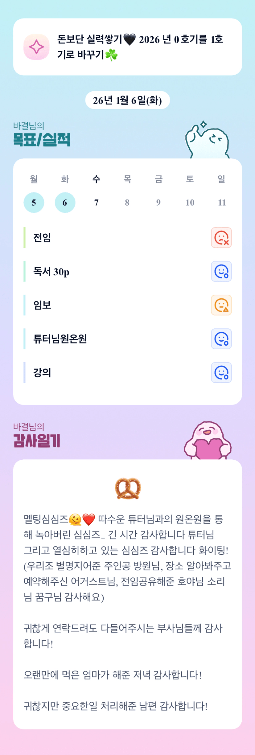 바결 조장님 오늘도 같이 화이팅해보시지요!!! ㅎㅎ