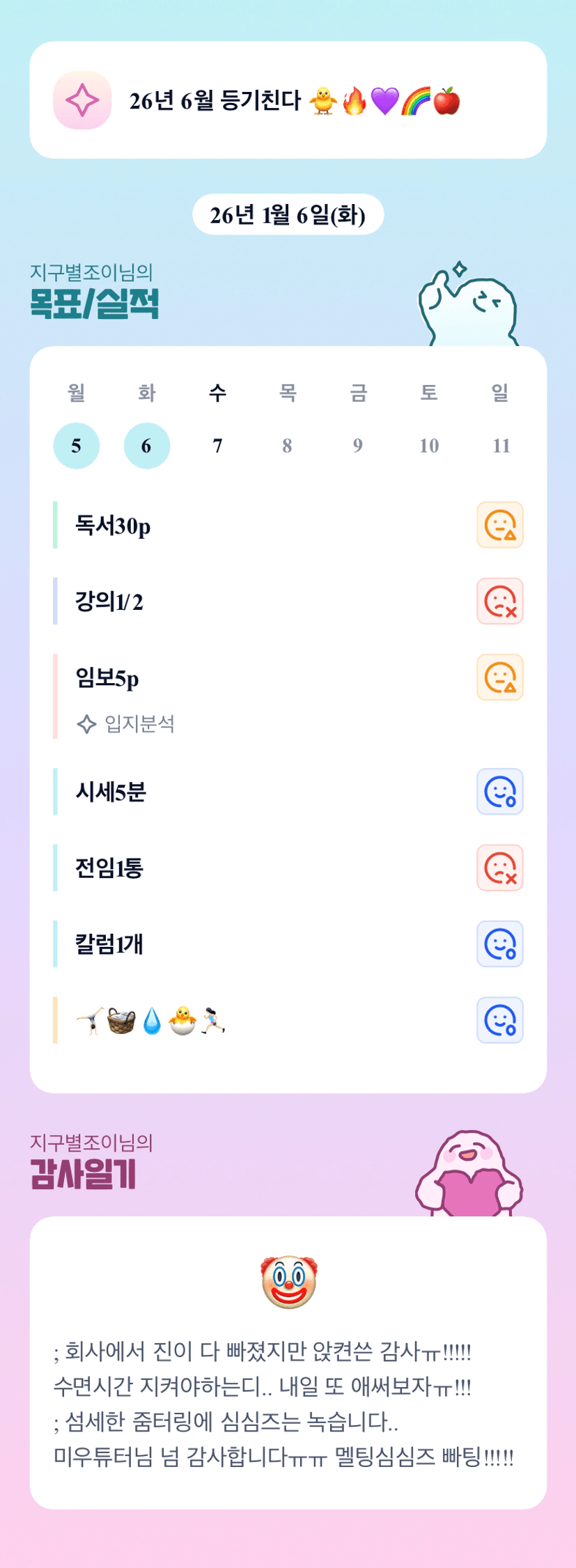 저도 오늘 30분이라도 일찍 자보려구용 ㅎㅎ 같이 노력해요 조이님!