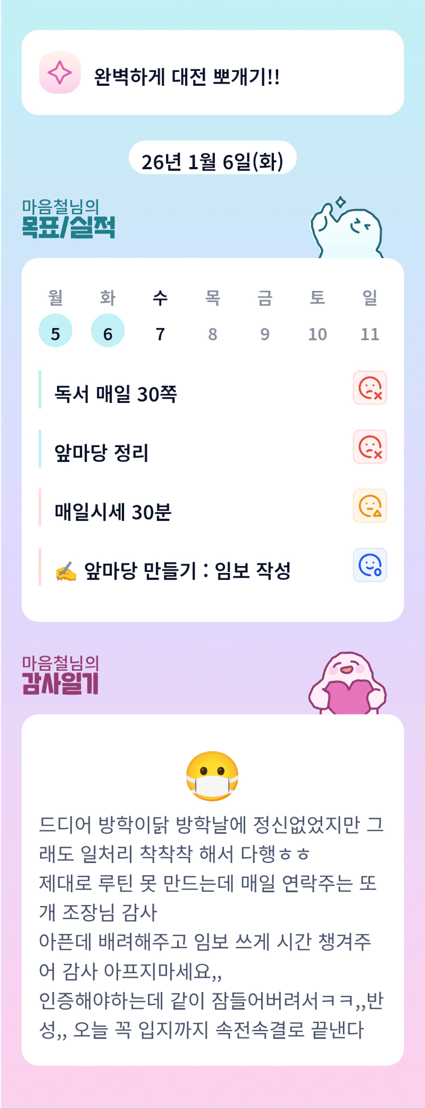 철님 방학이에요!?!?! 26년도도 파이팅입니다!!!ㅎㅎ