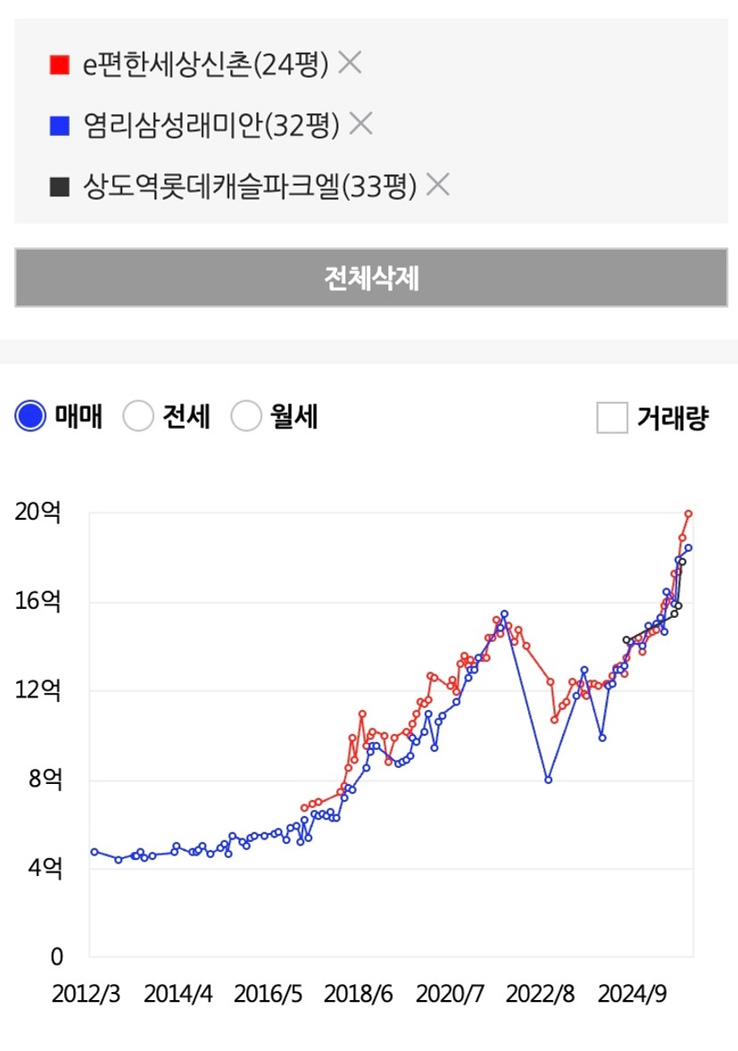 선호▶︎매매 10~12억대, 전세 5~6억대