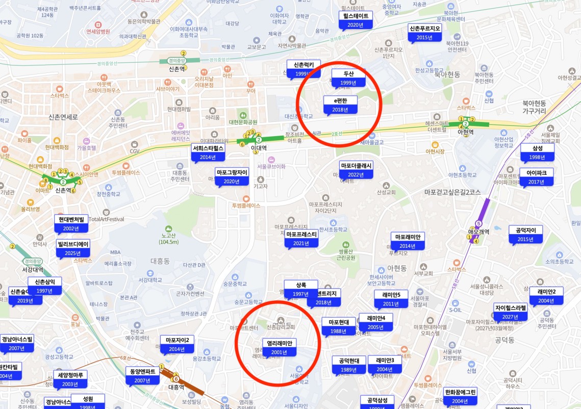 먼저 길건너면 마포인 북아현동을 보면 e편한세상신촌이 10.15 규제 5일장 거래 18.5억을 끝으로 2개월만에 1.5억의 높은 호가로 24평 기준 고점을 찍은 모습을 보여줍니다. 현재도 20억이 최저가로 나와있는 상태.