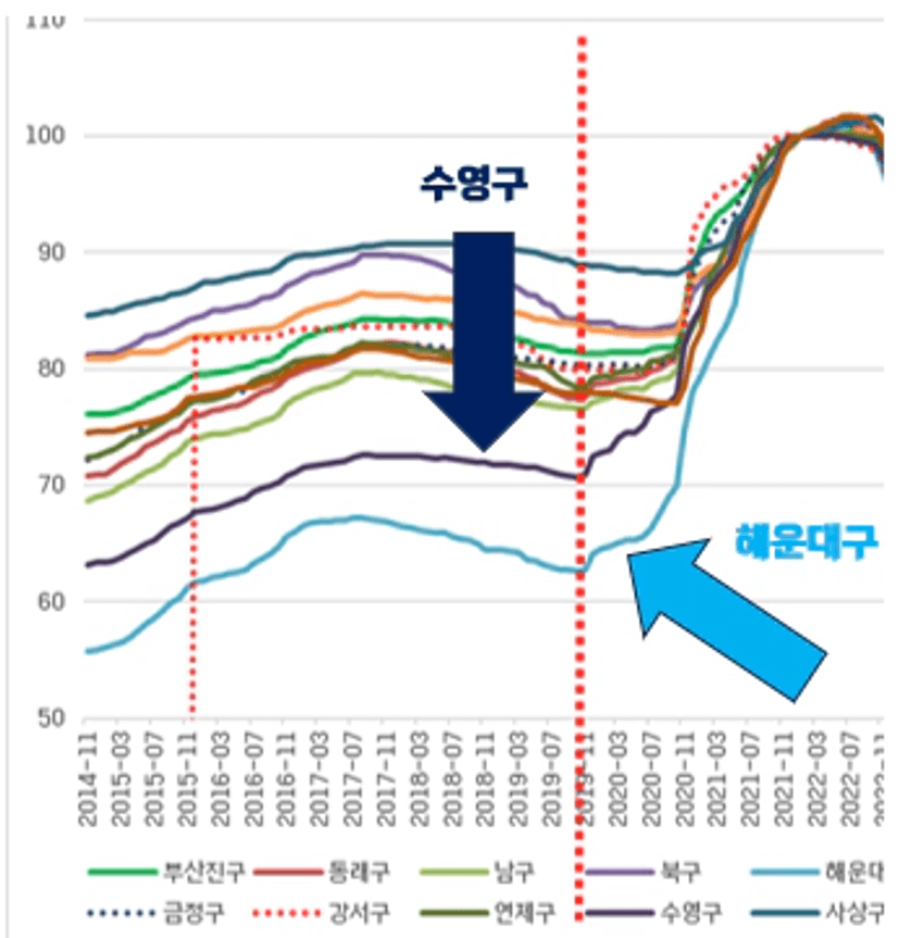 수영구와 해운대구가 먼저 매매가가