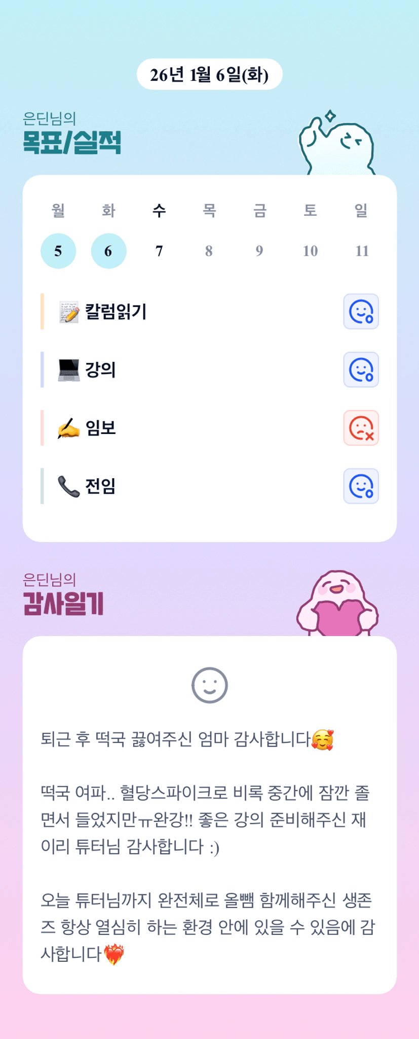 혈당스파이크 ㅎ;; 그럼에도 완강 해내신 은딘님❤️🔥 고생 많으셨어요~!! 오늘도 알차게 가주아!! 화이팅이에요🏅