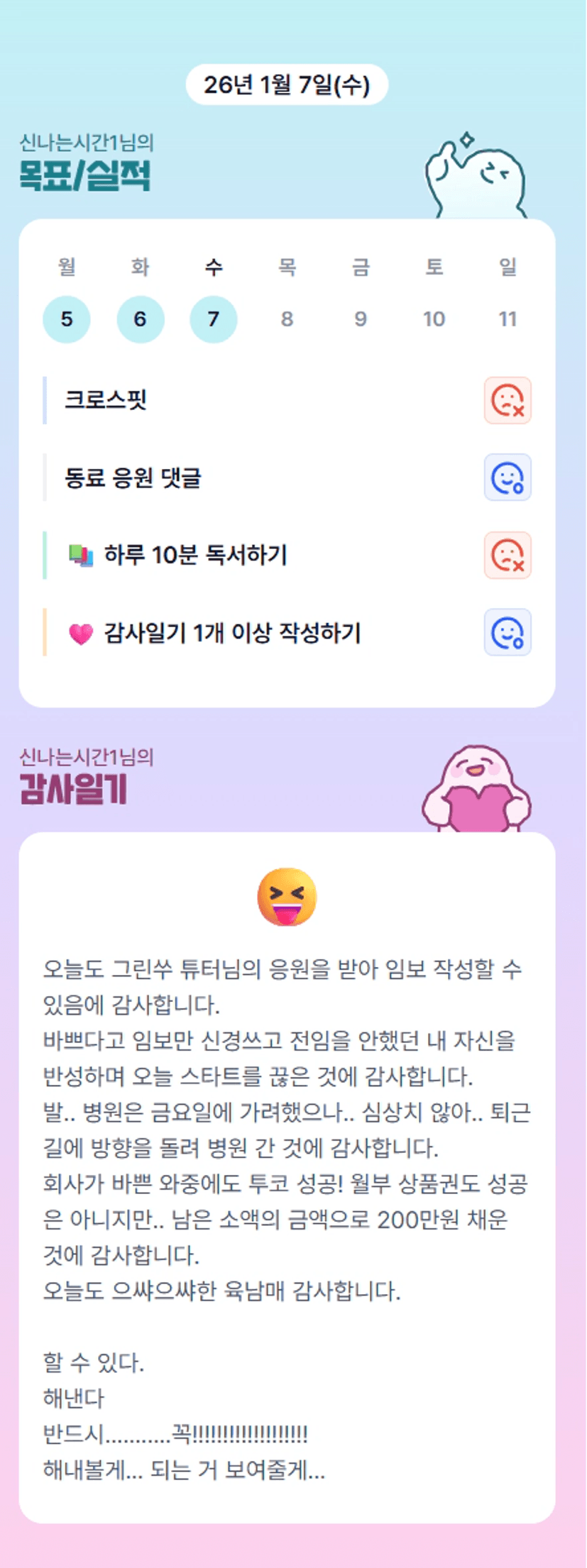 컨디션도 잘 관리하시고 넘 무리하진 마시길ㅎㅎ 다음달 실전반을 위해서라도!ㅎㅎ