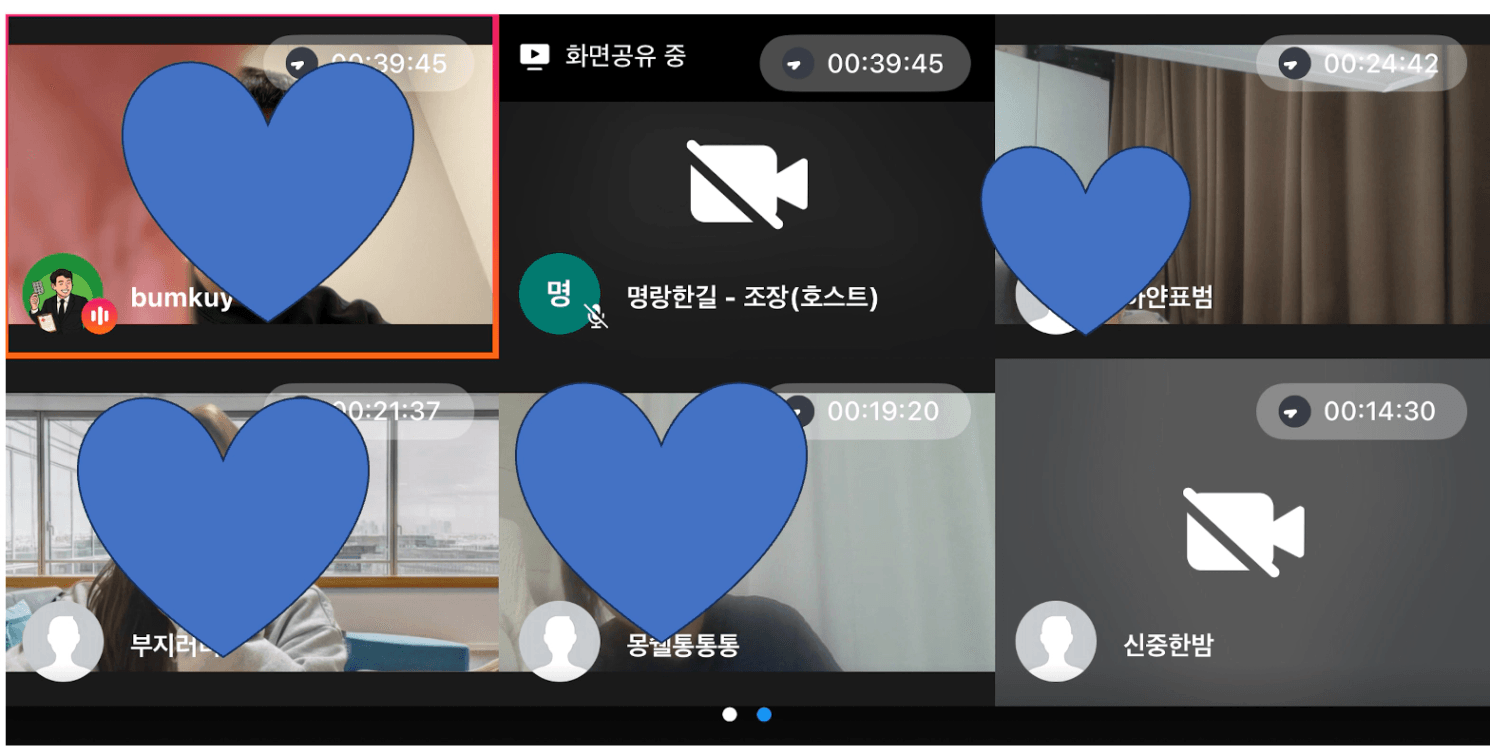 닉네임을 왜 이렇게 지었는지 이야기하는 시간도 가졌습니다.