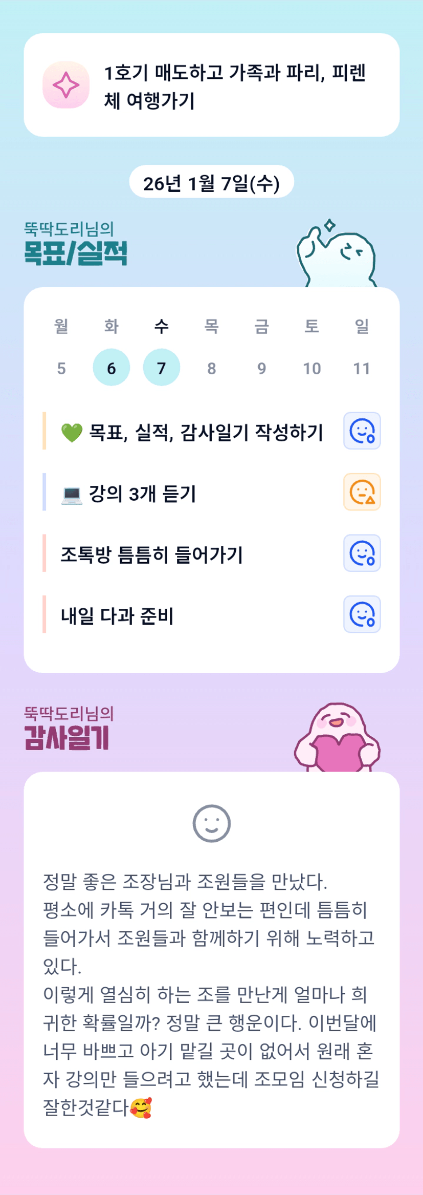 음~ 1호기도 부럽, 매도목표도 부럽, 매도 후 파리&피렌체도 꺄악~ 너무 부럽네요 그리고... 목실감 시작한거 축하드려요!!!