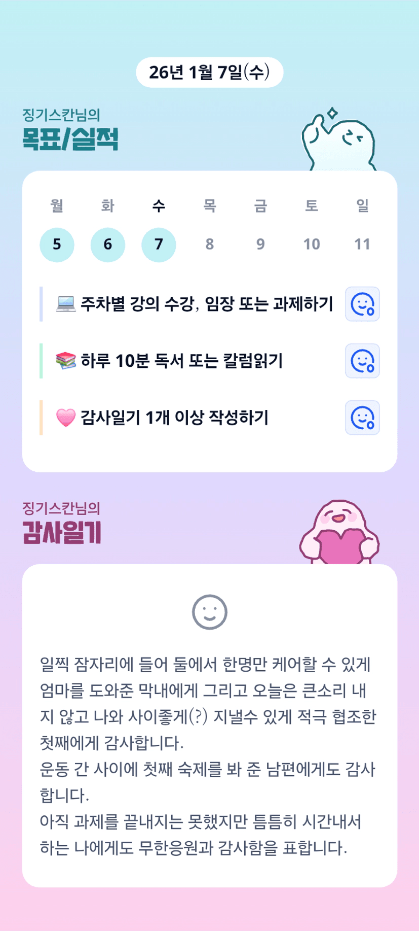 [์ค์ค72๊ธฐ ๊ตฌ๋ฆฌ7ใ ์ 2์ ๋ฑ7ใ ฃ์ณ0ใ ์กฐ_์ง๊ธฐ์ค์นธ] 1์ฃผ์ฐจ ๊ฐ์ ํ๊ธฐ