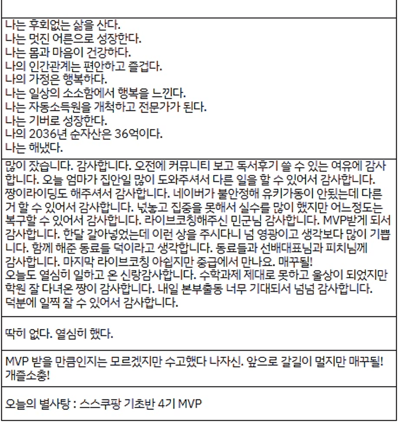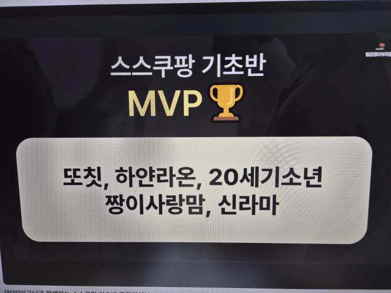 우와~~~ 짱이사랑맘님은 뭐든 시작하면 갓벽하게 잘 해내시는거같아요!! ,MVP라니!! 넘 축하드리고 기 받아갑니다!!ㅎㅎ