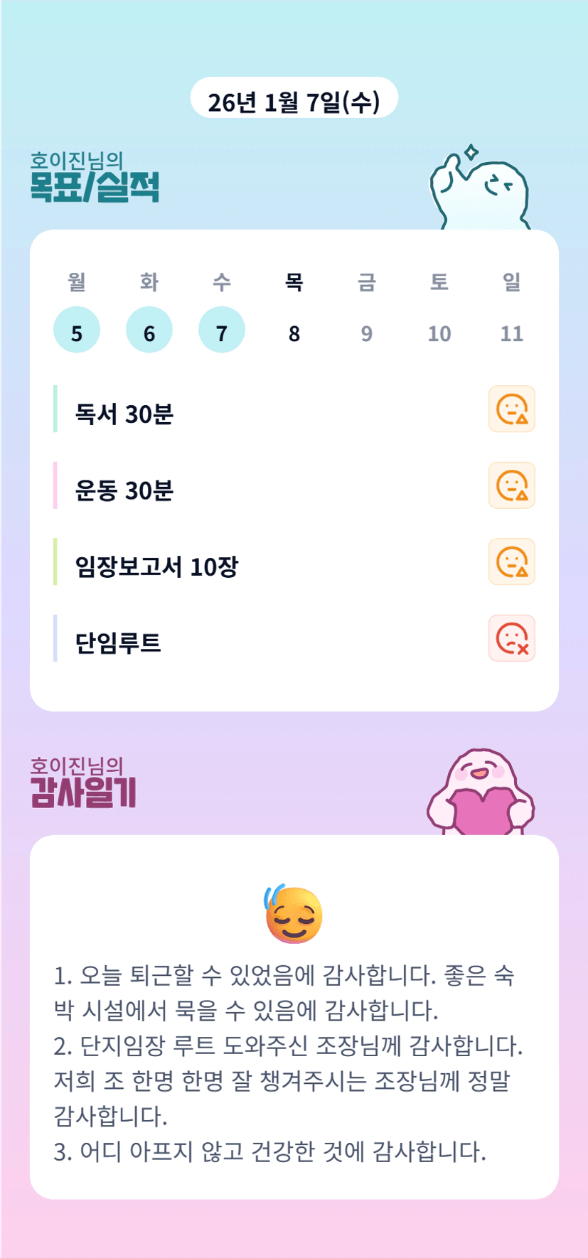 에고 야근 하셨나봐요~ 바쁜데 과제에 운동까지 고생하셨습니다👍
