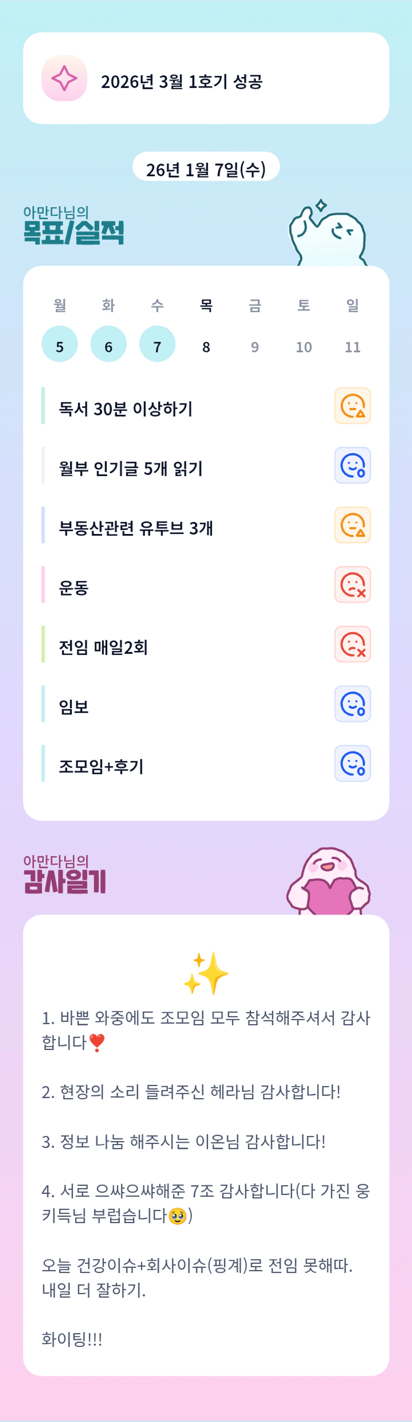 아만다님 오늘도 고생 많으셨습니다~! 조모임 모두 참석이라니 멋진 조원분들이시네요👍👍